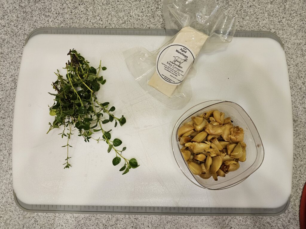 - Local goat cheese (a harder variety called Mentango from our local dairy—absolutely fantastic)